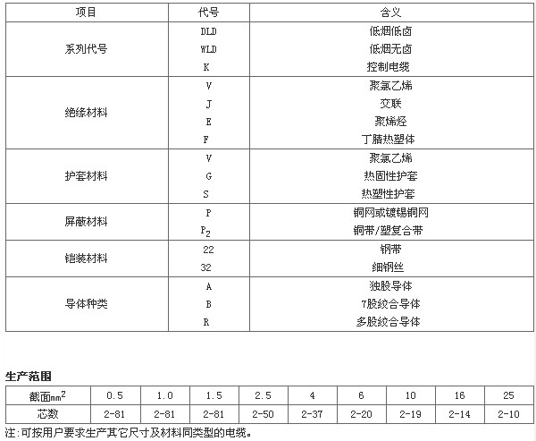 銅芯低煙低鹵聚氯乙烯J緣和護(hù)套控制電纜